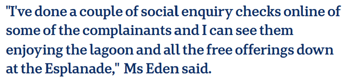 Mayor Amy Eden (pictured) admitted last Thursday she has personally been checking out the social media pages of complaining residents. This piqued the interest of the ABC: why would the Mayor be researching personal posts of her elderly constituents?