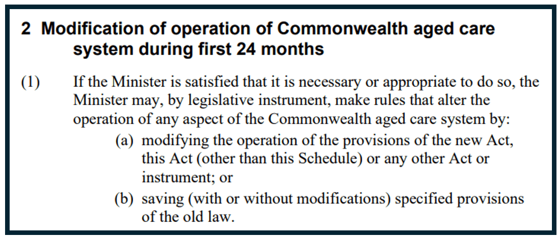 While submissions and hearing witnesses did express reservations about the Henry VIII clause, they supported it in principle, and generally stressed the importance of passing the Bills so that implementation of the once-in-a-generation reforms under the new Aged Care Act can proceed.