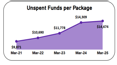 Notably, average total staff hours declined to 5.37 hours per client per week, a slight improvement on the 5.13 hours recorded for the December 2024 quarter. "It is significantly below the average 9 hours per client per week provided prior to the implementation of the Consumer Directed Care model in July 2015," the report states. Unspent funds also reached a record $4.3 billion.