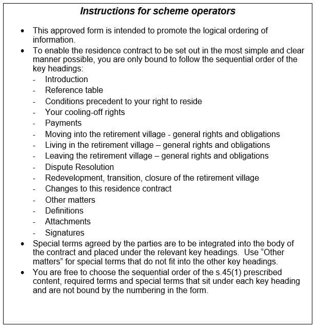 “Some stakeholders advise that a strict standard contract such as that adopted in New South Wales, can inadvertently result in complex and lengthy contracts and prevent the rights and responsibilities of residents and operators from being clearly outlined,” it reads. “For example, if a standard form contract specifies terms about common fees and charges, and the village provides additional services not contemplated by the standard contract, then the fees and charges for these may be forced into another part of the contract. As a result, the prospective resident needs to search several parts of the contract and attachments to see the complete picture of payments required by the village.”