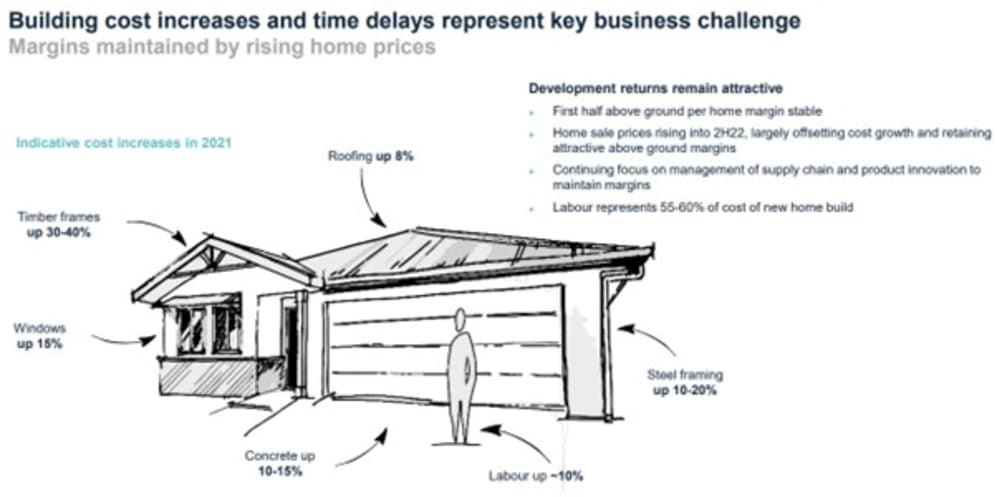 There also are labour shortages and expected wage rises. Labour represents 55-60% of cost of a new home build for Ingenia.