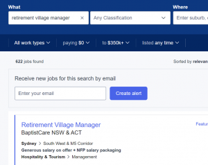 Employment agency SEEK on Monday had 622 retirement village managers jobs available in Australia.
