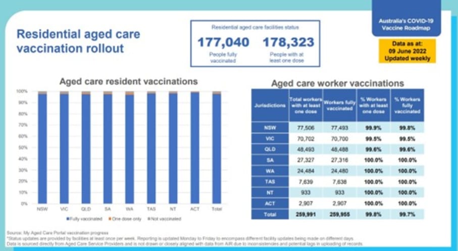 Department of Health data shows 63,515 aged care residents have had a fourth dose, which represents 51.3% of the eligible population.